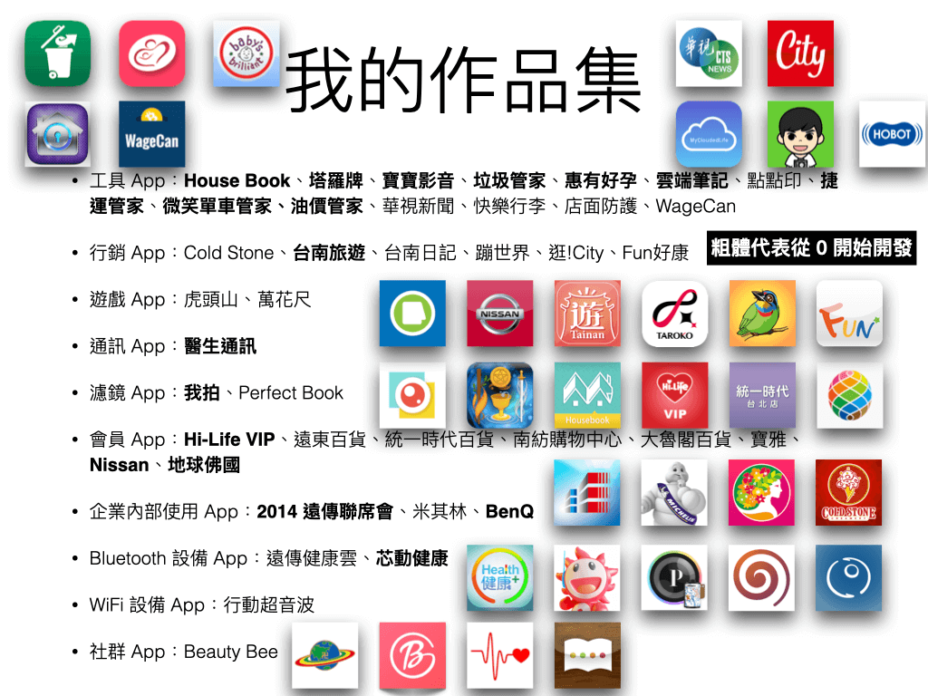 我是 Mobile App Developer,從 2012 年開始寫 App,對於設計 App 越來越有熱情,至今已有超過 10 年開發及維護 App 的經驗,歡迎有需求的公司及朋友可以來信詢問喔~😎