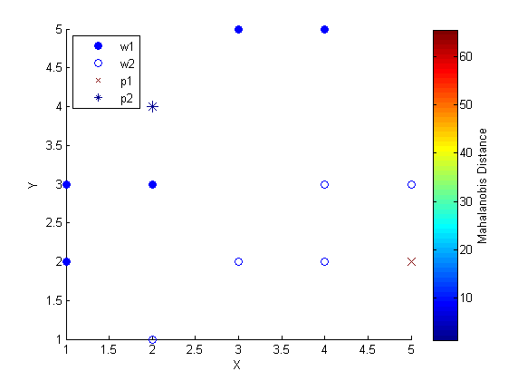 dp2w1=(p2-mean(w1)’)’*inv(cov(w1))*(p2-mean(w1)’)