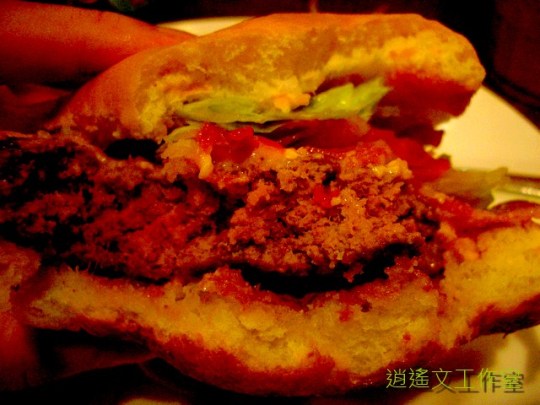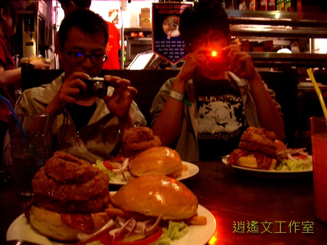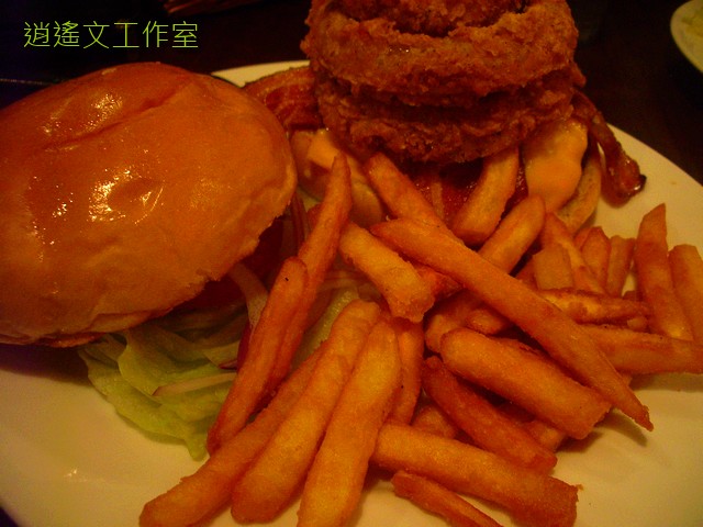 我們三人都點了龍捲風起司堡套餐,飲料可以無限續杯,有可樂、雪碧、芬達等等,漢堡上有洋蔥圈、火腿、起司、牛肉等等,看起來挺大的又可口,我們三人都忍不住拿起相機來拍照:p這套參價值230元,有收10%服務費,所以一個人253元喔!