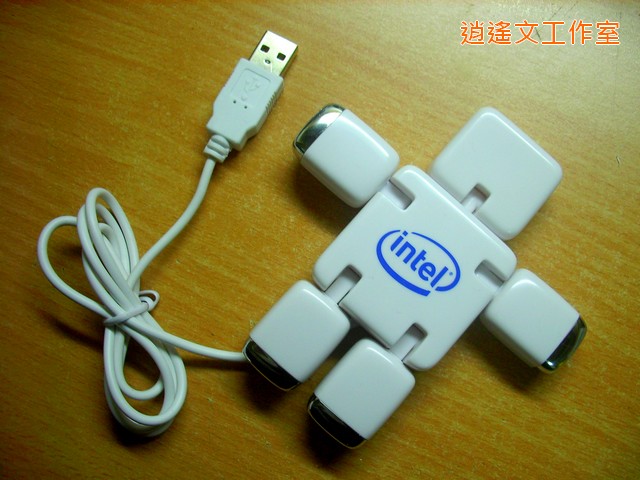 有四個孔的USB擴充槽,外型很像機器人,四肢和頭都可以轉動喔!我很呷意~