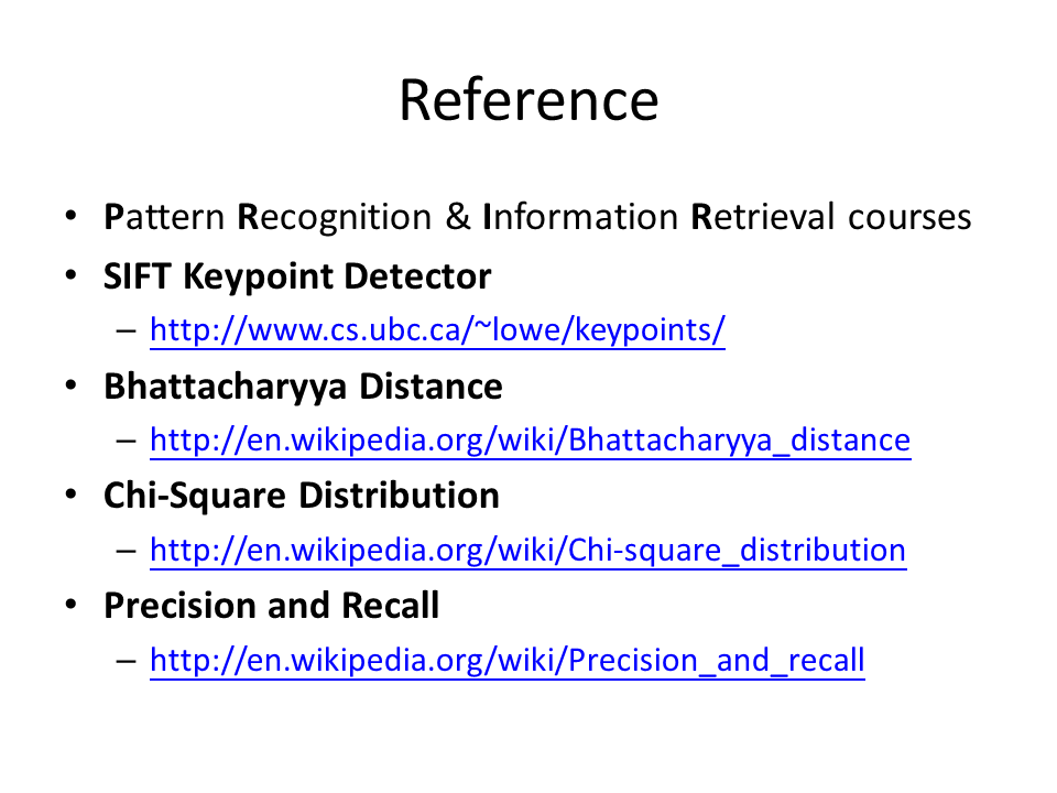 上個禮拜,Google才發佈了一項新的搜尋技術,也就是「以圖找圖」,只要把影像拖曳上傳到瀏覽器,Google便會立刻分析該影像,不到一秒鐘的時間,類似該影像的圖片立即被搜尋到。我這專案的點子類似以圖找圖,雖然我不知道Google用了什麼樣的高超技術,但至少看得出來顏色特徵是其中一種方法。想要玩玩看以圖找圖的功能,可以到http://images.google.com.tw/。另外,它對影像創作者幫助十分大,可以搜尋到哪個網站盜用你辛苦的創作,進而採取智慧財產行動。
