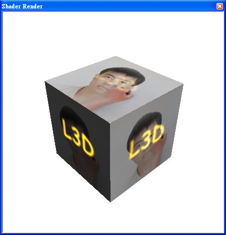 此程式多加了一個貼圖,上頭有L3D三個字元,正對光源會消失,背對光源會顯現,由smoothstep函式來控制。