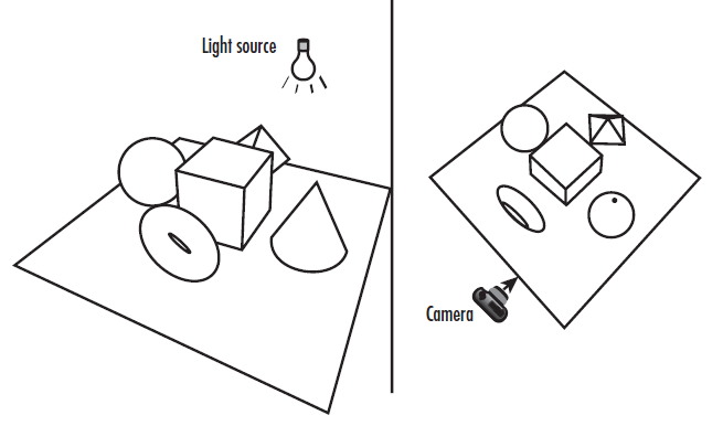 一個物體之所以會處在陰影當中,是由於在它和光源之間存在著遮蔽物,或者說遮蔽物離光源的距離比物體要近,這就是 shadow mapping 算法的基本原理。