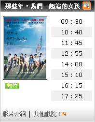 話說,看了京站威秀影城的時刻表,發現最多場次的竟然是「那些年」!一共有15個場次,不曉得會持續到哪時候?