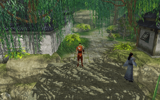 接下來就是展示遊戲下主角站在大樹底下的截圖,分析一下四種陰影模式: