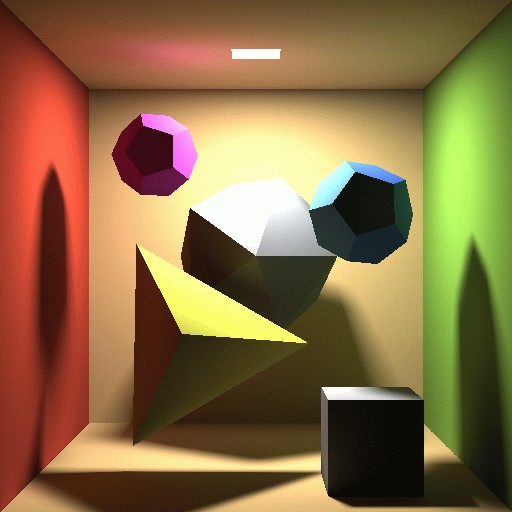 indirect lighting。polygon除了接收light給的光之外,還接收了其它polygon反射light的光,polygon上的顏色會透過光傳遞出去。