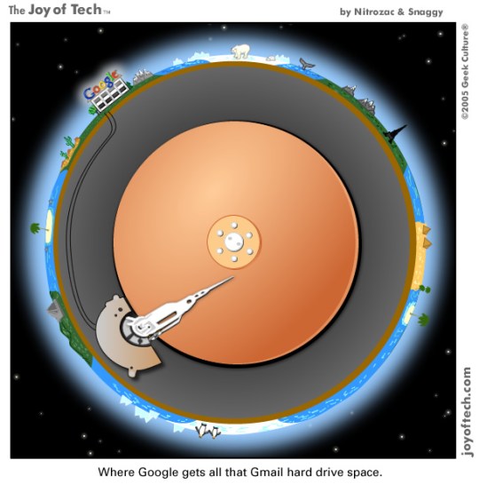 之前看到一張圖,被用來說明Gmail容量從哪裡來,十分有趣!整個地球地底下的容量,就是Gmail容量的來源:P