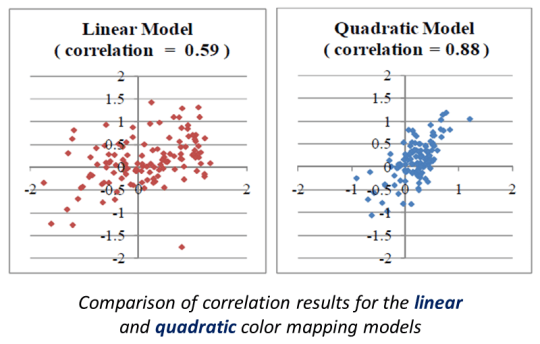 l 方法:在所有成對的影像中,發現相對應的像素之間潛在的數學關係且最佳地連結色彩與色調。