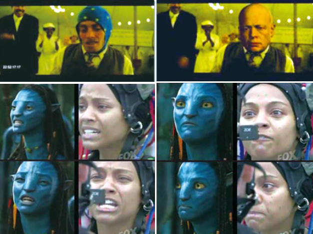 在拍攝取樣皮膚貼圖時,僅有Specular的部分可以見到的細節,所以他們發明了light stage這樣的機器,利用閃光取樣360度的人。若欲去除閃光於皮膚所產生的局部high light,拍攝時可以利用偏光鏡來濾光。Bump Mapping可以取樣皮膚上凹凸的表面。Emily高幾何數量模型有300萬面,作動畫用的低幾何數量模型僅5萬面。善用Normal mapping與Displace mapping。眼睛與嘴巴是motion capture的弱點,但卻是人類表情非常重要的部分。「班傑明的奇幻旅程」電影裡的前52分中的主角的臉部都是由CG做出來的。