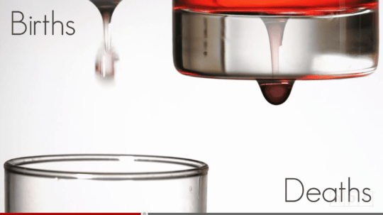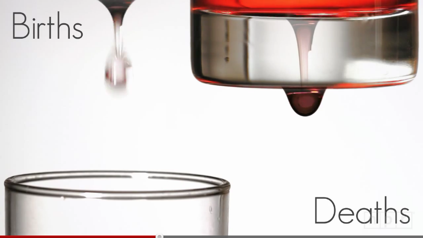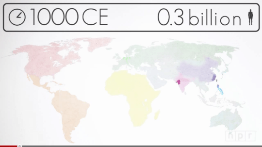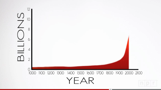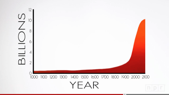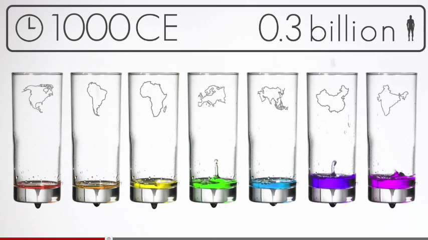 這則影片的重點是在1804年到2011年世界人口從10億快速成長到70億,是因為醫學的進步和農業技術的改進,那世界人口會因此不斷往上攀升嗎?答案是否定的,隨著水源、食物、能源日益減少的情況之下,世界人口會趨於飽和狀態。