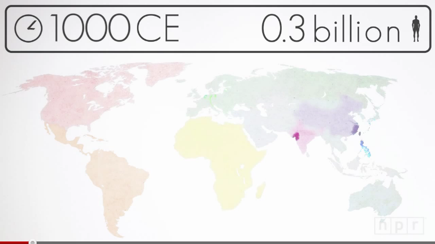 看到數字以視覺化的方式表達就覺得很有創意,尤其是全世界人口超過70億 (2011/11),我們會想知道西元哪一年全世界有10億人 (1804年),在哪個地方成長速率最快,這一則影片7 Billion: How Did We Get So Big So Fast?可以很清楚地告訴我們。