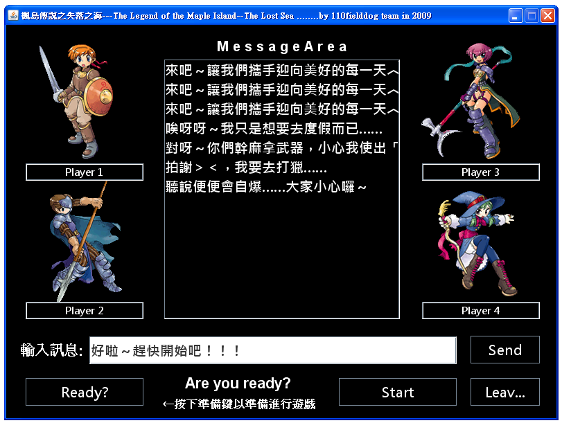 大學時代難得有一門課可以寫大型程式,還可以跟志同道合的同學合作,雖然最後成品只完成一半,但我還是想分享出來給大家參考。這是我們大三軟體工程這一門課所作的期末專案,名字我們取做楓島傳說—失落之海 (The Legend of The Maple Island – The Lost Sea)。