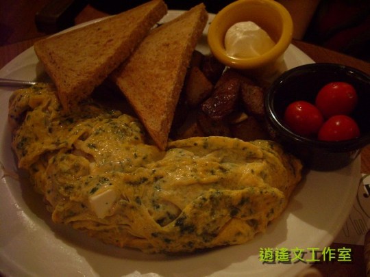 果然……阿那達吃不到一半就覺得有飽足感,她點了相當鹹的希臘蛋捲(240元),還好她喜歡鹹多過於甜,而我剛好相反XD~所以她建議我點的法式土司早餐(240元)相當美味!