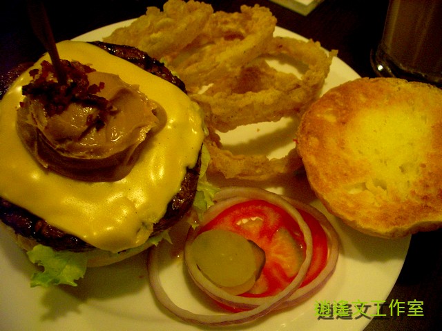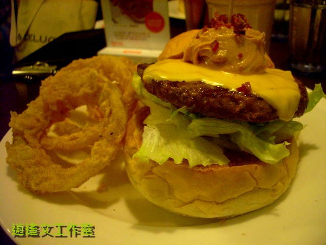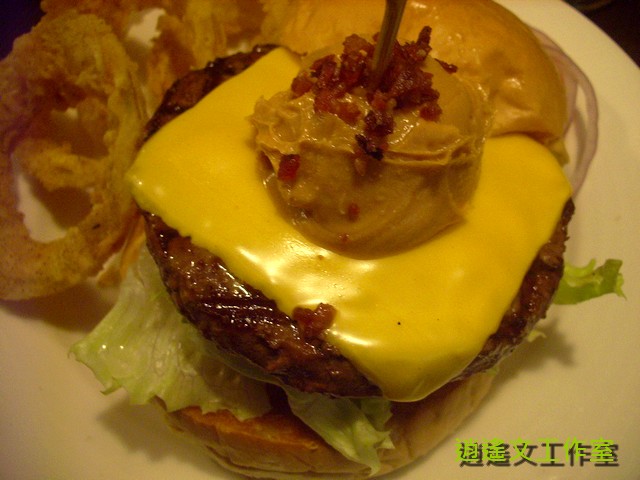 哇~等了那麼久,就是為了這一客(刻)~花生醬牛肉漢堡!垂涎欲滴的我還是要忍下來拍張照…