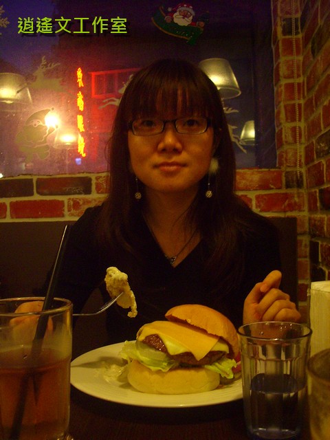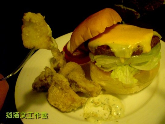 阿那答點的是雙層起司牛肉堡,配餐是炸野菇!同樣很香很可口~