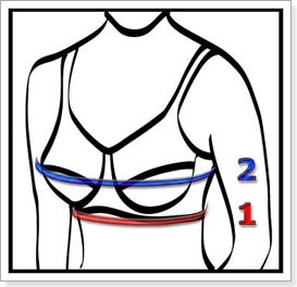 1. 胸下圍(胸部下緣,通常介於32吋到36吋)