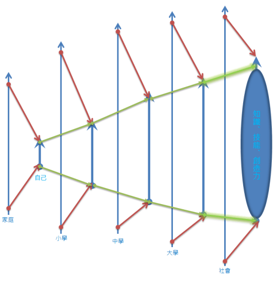 上圖是國外一個學者所提出的想法:圓圈之內是目前我們人類所有的知識,顏色所代表的意義如~藍色:小學,綠色:中學,粉紅色:大學,深粉紅色:碩士,紅色:博士。詳情可見我之前的紀錄Ph.D. 圖解 (The illustrated guide to a Ph.D.)。