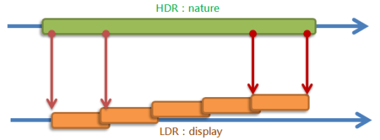 先來看一下HDR (High Dynamic Range)和LDR (Low Dynamic Range)的差別: