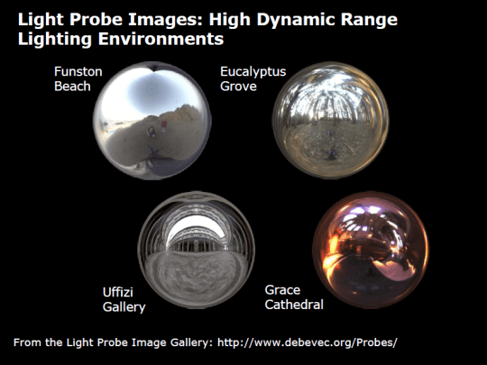 投影片中的網址應該為http://www.pauldebevec.com/Probes/,是SIGGRAPH 2001的課程,才能正確連結到作者Paul Debevec的網頁,頁面中有更多詳細且豐富的資源可以利用。