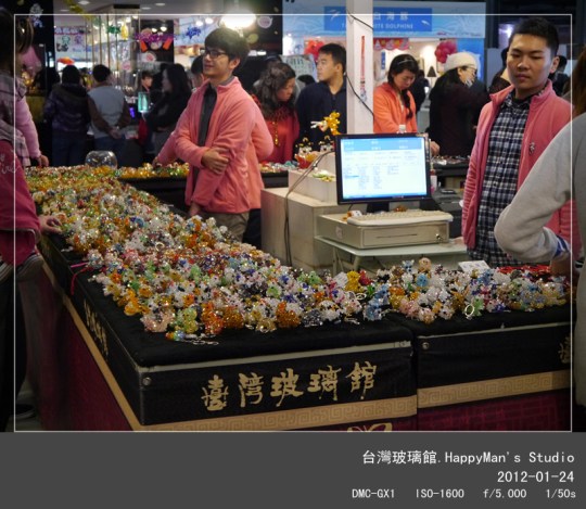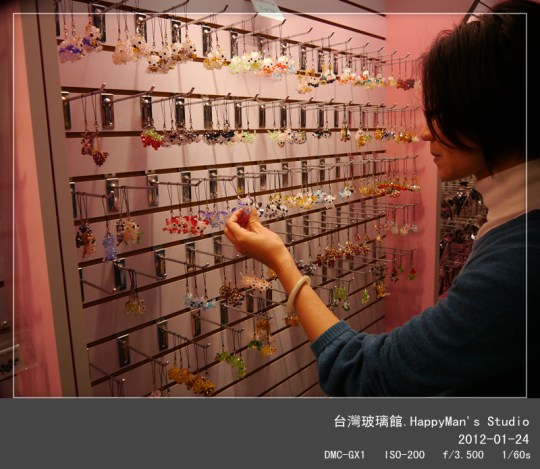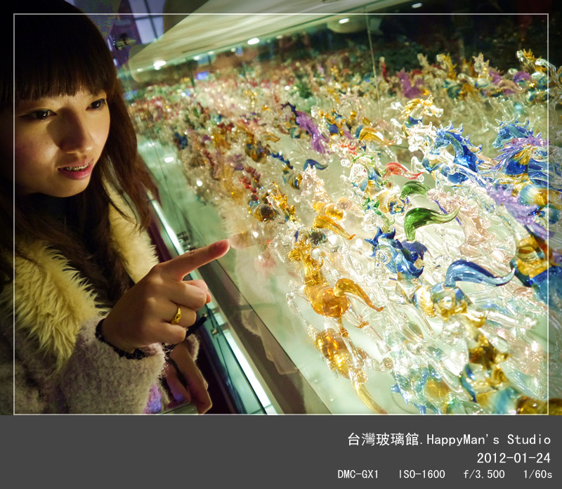 今年春節很開心能來到台灣玻璃館,讓剛買GX1的我能盡情地拍照!最後我買了一個裝有海沙的小瓶子,上頭寫有彩色「台灣玻璃館」字樣。