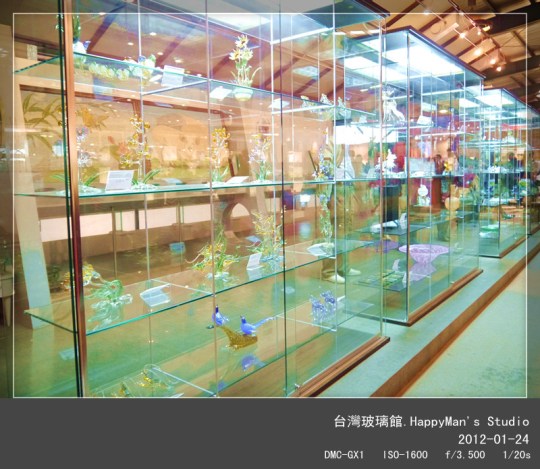 上圖中的建築物就是台灣玻璃館,外型很像一艘船,不知道各位覺得如何。一樓是商品區,可以買東西也可以拍照呢!對於我這個愛好攝影的人來說真是個福音!東西可以不要買,但是卻不可以不要拍!而二樓是展示區,展覽十分出色的玻璃藝術品。