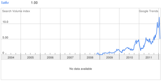 之前有觀察過google trend中的lativ,從2008年末開始在網路搜尋有明顯的查詢量,如今再一次查詢:
