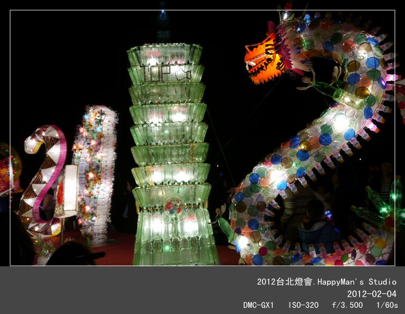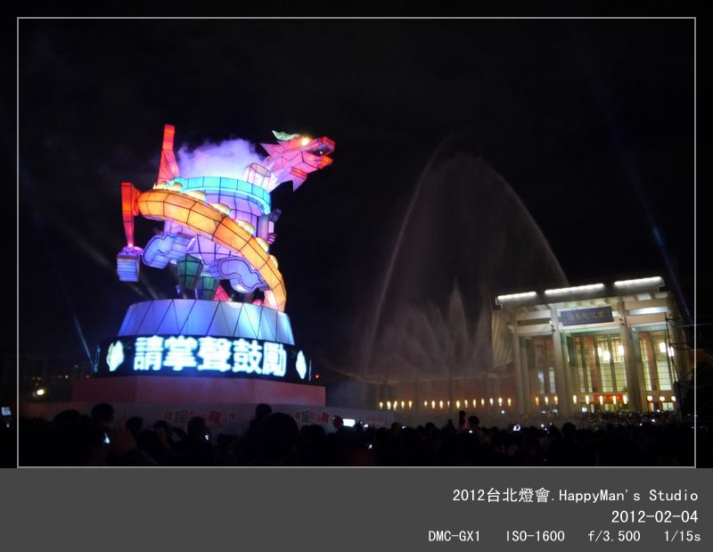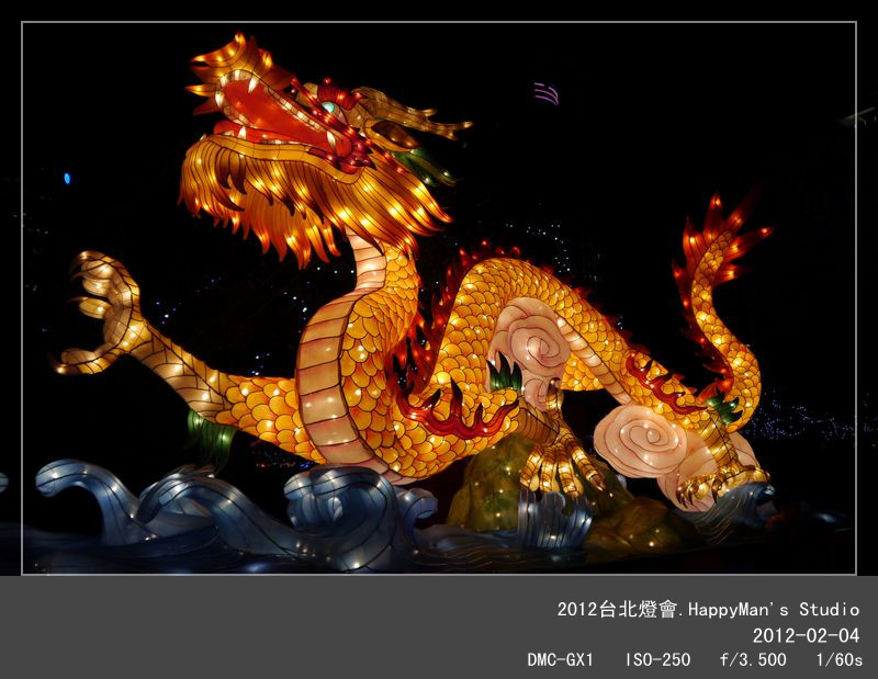 今年的主燈是「Happy龍」,我這個HappyMan豈能錯過呢?在台北邁入第六年,我已經逛過好幾年的台北燈會!今年是人氣最旺的龍年,當然展品和人潮也會不同以往,適逢週末加上天氣超好,台北民眾無不攜家帶眷到市政府或國父紀念館來賞燈,擁擠的程度一點也不會輸跨年活動呢!