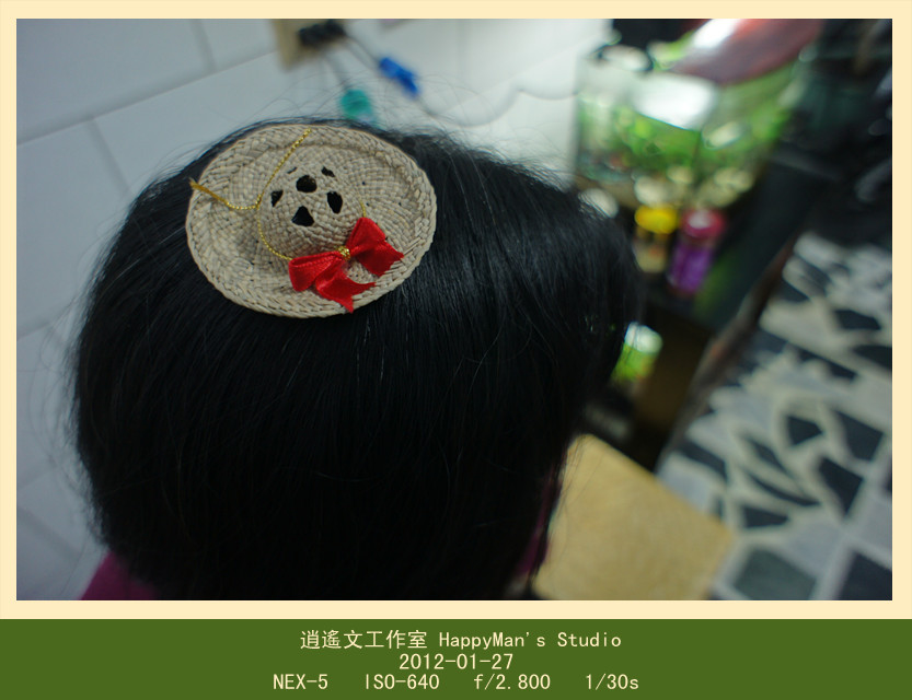 • 2014/04初,阿豪網友,訂製草帽、平片夾、裝飾小帽,加訂草蓆。特別的是草帽是模仿清代官帽。