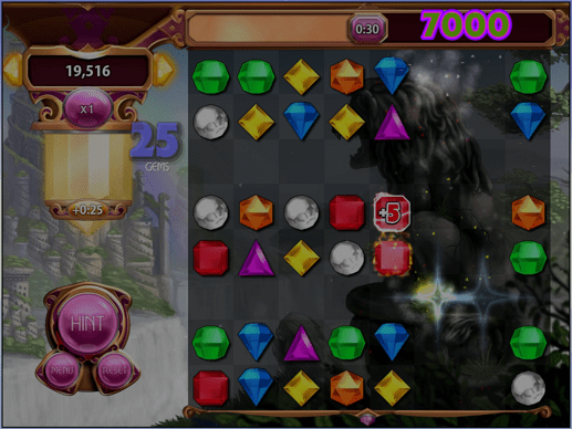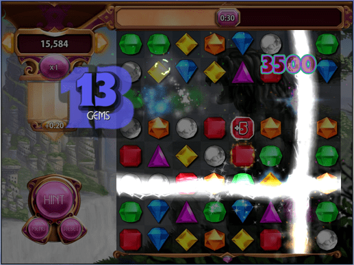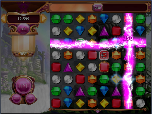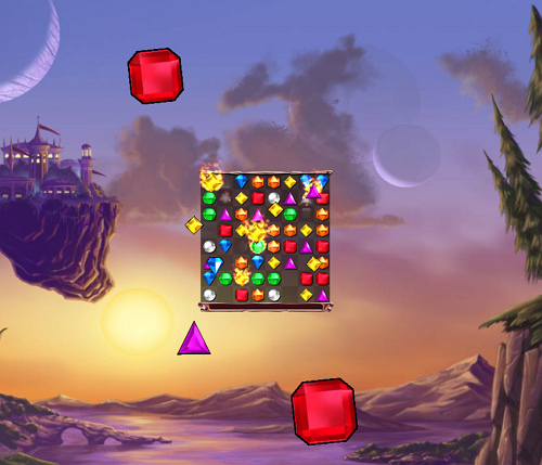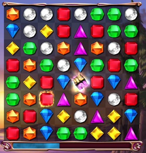 寶石方塊 (Bejeweled)就如同它的名字一樣,角色就是晶瑩剔透、閃耀奪目的珠寶,當然一定能飽你的眼福,除了影像吸引目光之外,其實玩遊戲還有一項因素可以炒熱氣氛,那就是扣人心弦的旋律!