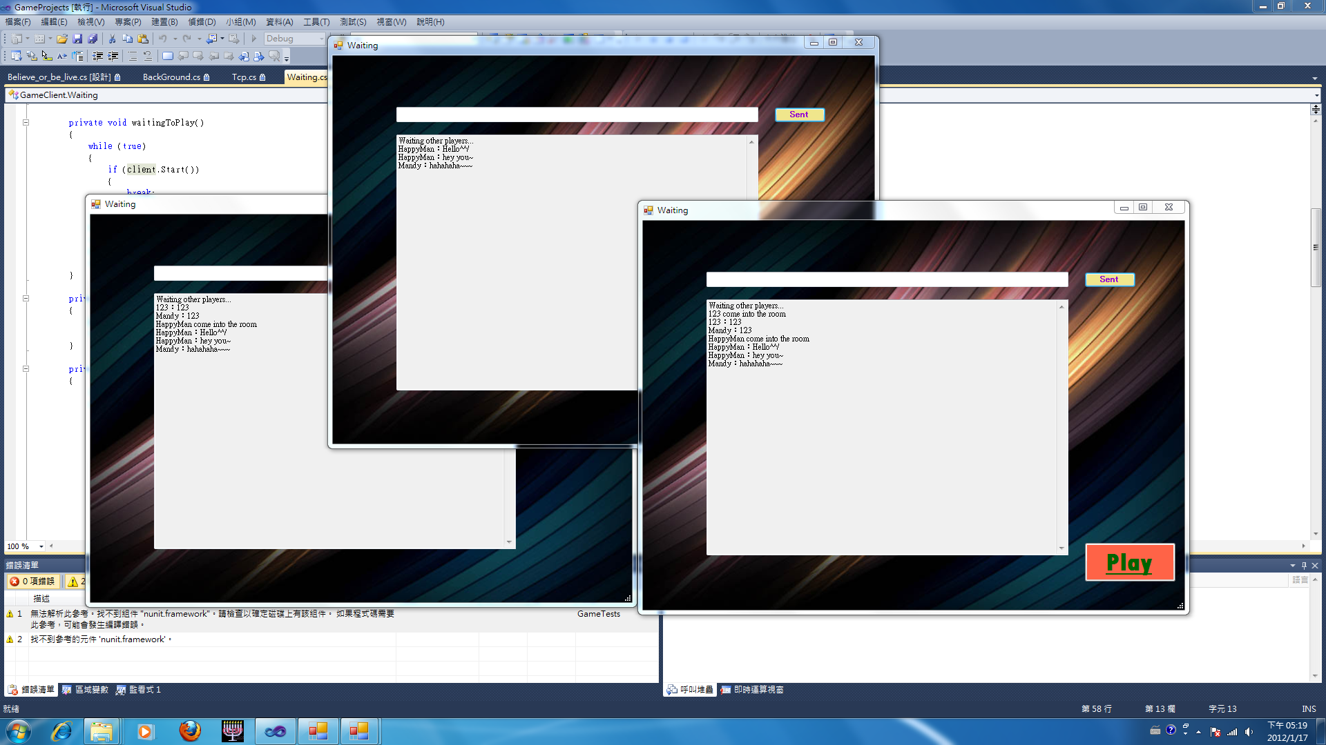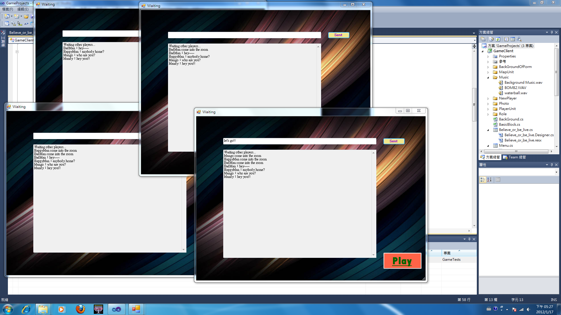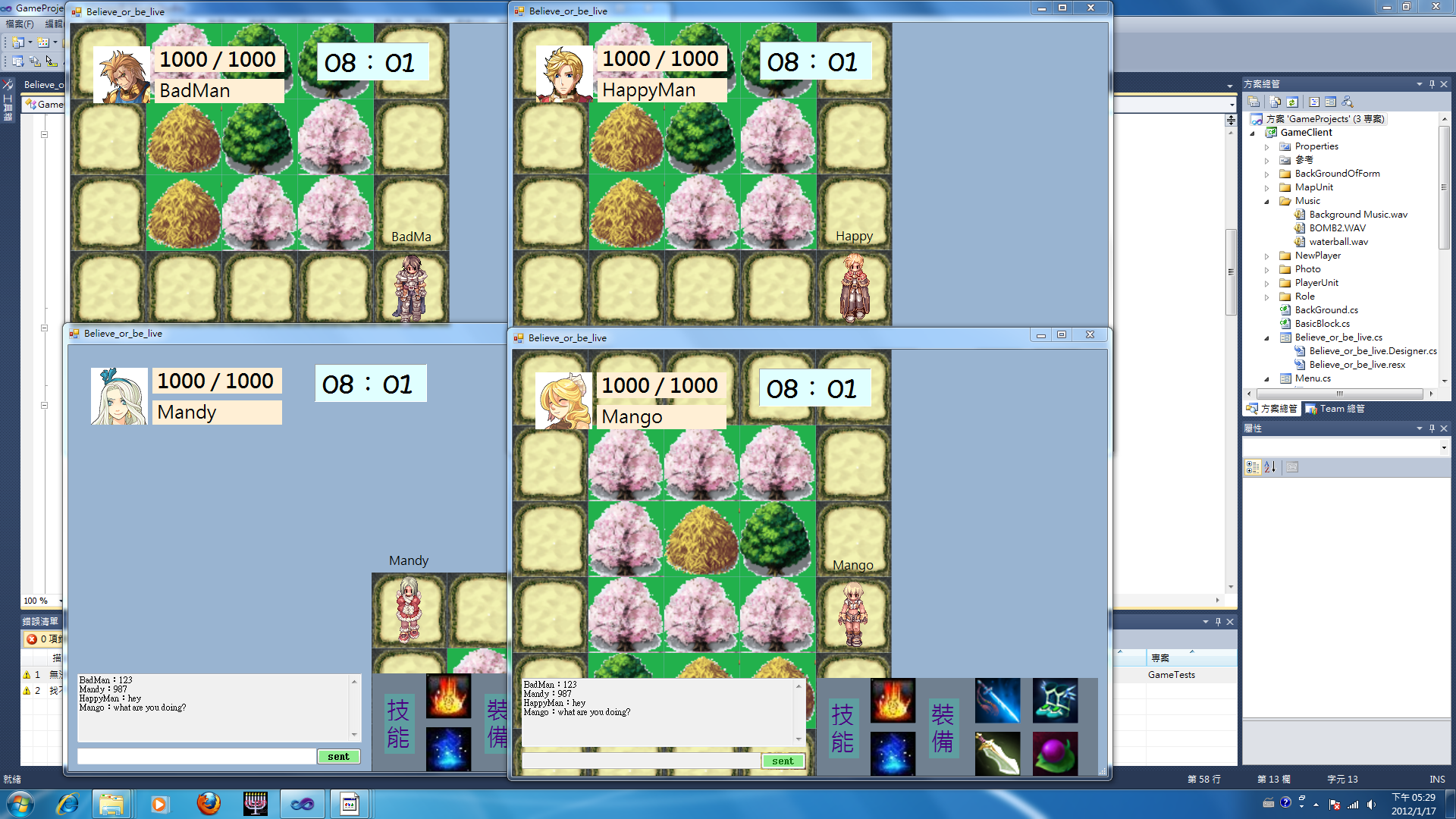 以下是在同一台電腦上測試四人連線的狀況:(點圖可放大)
