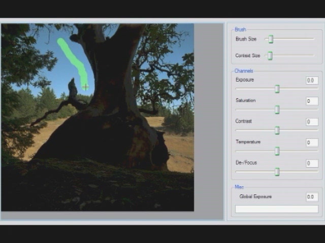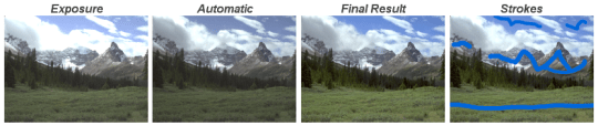 這篇paper展示新的互動工具,能夠區域調整色調值和其它視覺參數。相較小心選擇區塊或是手繪圖層遮蔽,使用者能夠用此工具快速指出感興趣區域,僅藉由少許且簡單的筆觸,然後使用滑桿來調整亮度、對比和其它在此區域的參數。使用者所制約的因素將影響整個影像,並且使用邊緣保留 (edge-preserving)技術避免色調因調整而擴散到不同亮度的區塊。這個系統適合調整一般影像或高動態範圍影像 (high dynamic range images),而且提供使用者更多創造性的控制,可自動產生色調映射 (tone mapping),提供基礎或更多的區域調整。