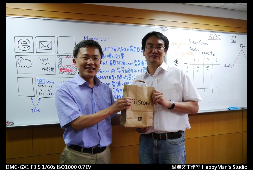 我老闆臨時有事不能來,託付給我交給另一位教授,裡頭是兩個師大大師保溫瓶,外頭卻以iStore包裝,啊哈~這就是賣產品的方法啦!