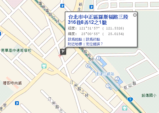 - 地址:臺北市羅斯福路三段316巷8弄12-1號
