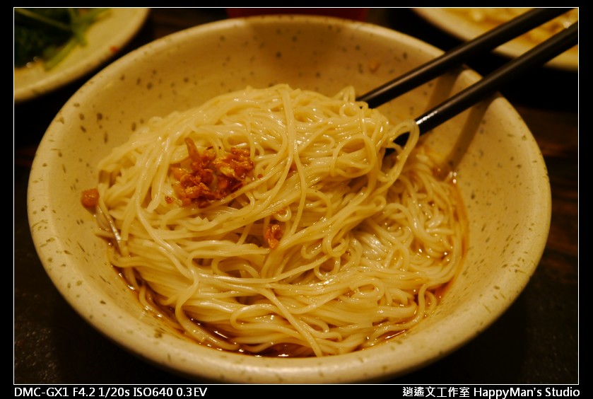 阿元先為我們示範如何點餐,他覺得我們三人會很客氣而只點主餐,所以一次叫了好幾盤小菜,我們分著一起吃,嚐了很多美味。這時服務小姐端上三杯飲料,很不小心地掉了一杯在地上,說時遲那時快,正當我在「套」阿元所應徵的公司名字時,綠茶居然濺到我右腳上!還好沒弄髒我手上的GX1微單眼,不然我真的就會生氣了~看在服務小姐很有誠意地道歉之下,我便笑笑地說「沒事」。我想大概是我正在做壞事,所以才會遇上這樁糗事,不過還是有問到啦~