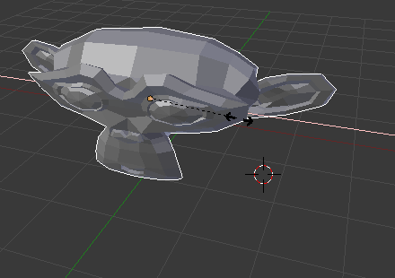 這時候就會有人問,這樣子移動、旋轉和縮放不能確定三軸的關係,其實是可以分別對XYZ這三軸分別操作。以縮放為例,先在X軸(紅線)附近按下左鍵,接著按下S鍵,再來將滑鼠往猴子中心外X軸移動,我們將會發現,猴子會在X方向放大,其它軸的操作亦同,移動和旋轉操作亦如此。
