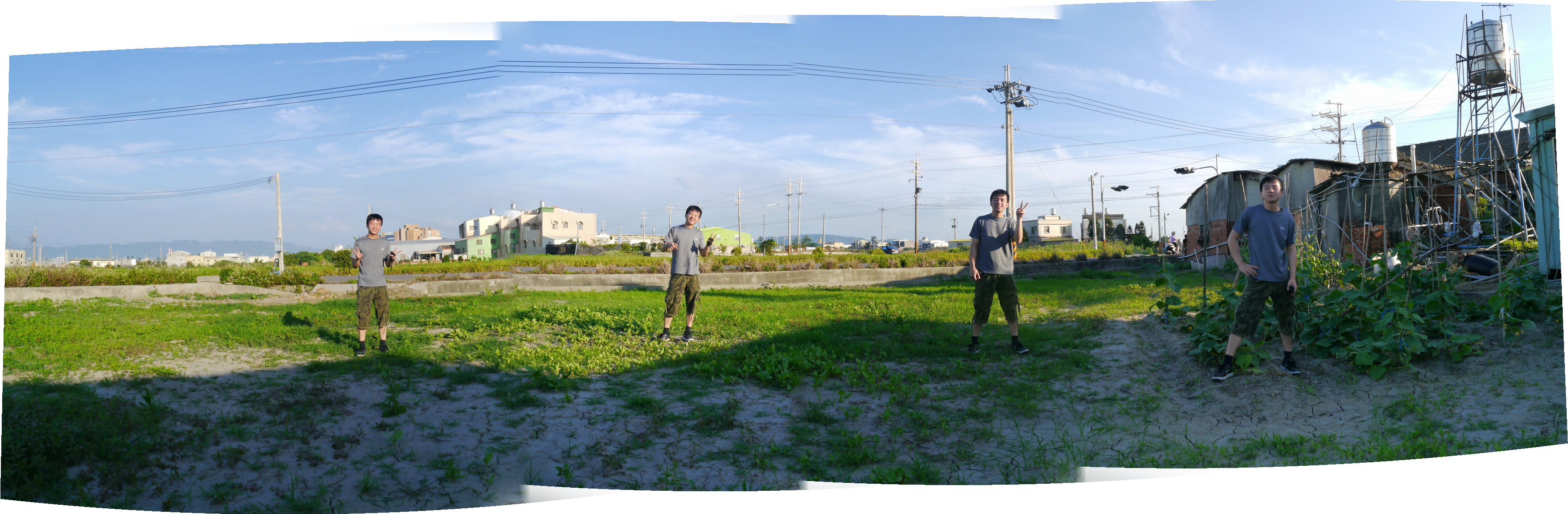 最近在作接圖工作,不過那時還沒有機會到外頭拍環景,這次趁著母親節回台中,邀了表弟在菜園配合我拍攝,今日總算可以將這些相片作全景合成,雖然有程式可以給我作接圖,不過我剛發現PhotoImapct X3有全景合成功能,於是馬上開起來把玩:P