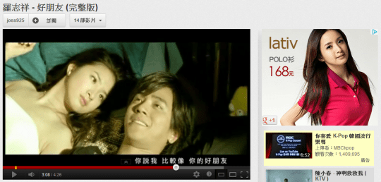 話說還有很多地方lativ給我驚喜~像是我在看Youtube上羅志祥的好朋友MV,旁邊的廣告剛好是MV裡的女主角XD~