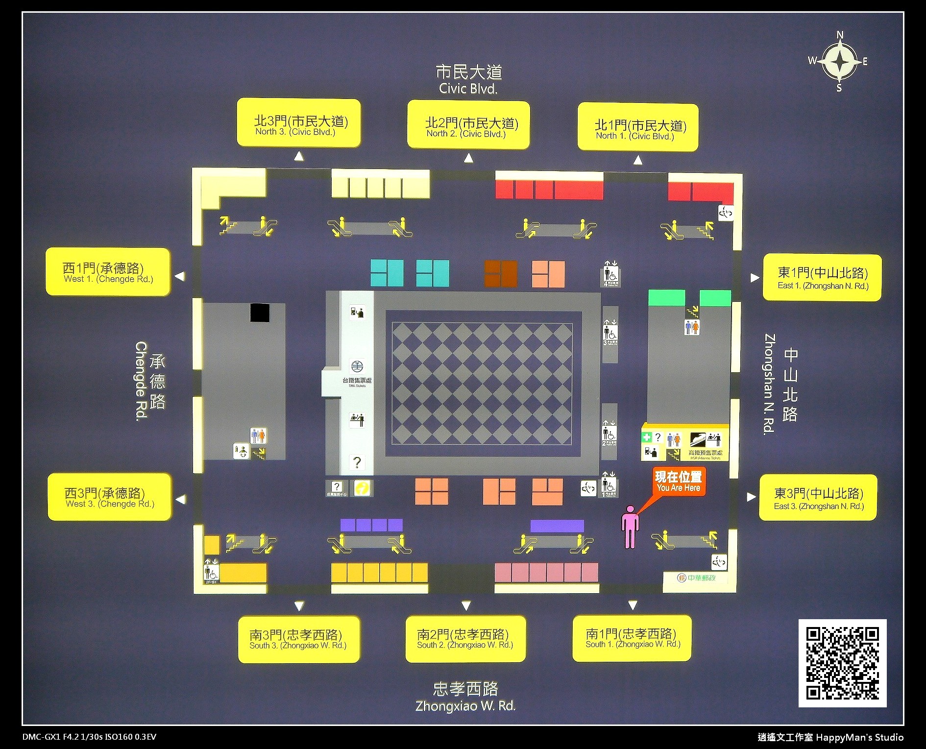 因為是我拍攝此張台北車站平面圖 (Taipei Main Station Plan),我才冠上自己的標誌,若作者有需要我標示名字的話,請留言或寫信跟我說一聲喔~很佩服您的繪圖是如此清晰明瞭,讓大家都豁然開朗了!
