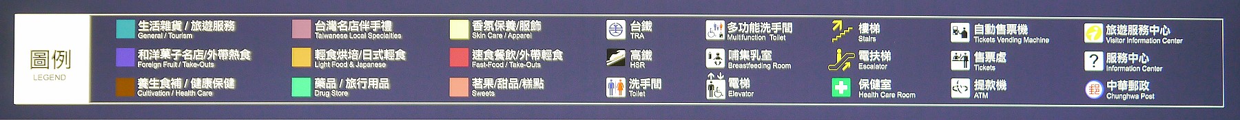 至於想知道不同顏色方塊區域各有什麼樣的服務,可以參考下面這張更清楚的圖例說明,同樣點圖可放大觀看,祝每個遊客都能準時抵達目的地:)