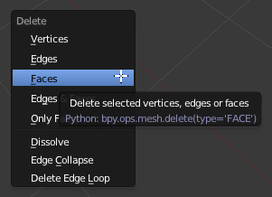 再回到Edit Mode,我們想要對點、線、面做刪除的動作,選取點/線/面按Delete鍵,將出現選單列表。
