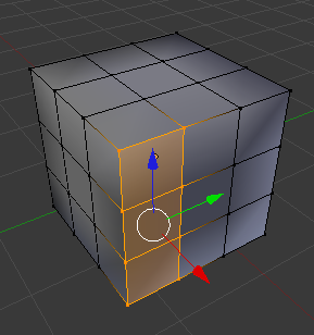 首先選取cube物件,接著Tab鍵切換到Edit Mode,可以看到整個視窗左方介面出現Add->Loop Cut and Slide,這個功能可以做到什麼效果呢?就如同它的名稱,能夠迴圈切割並滑動。快捷鍵為Ctrl+R。