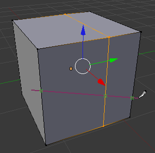 點擊功能後將滑鼠在cube上游移,會發現有粉紅線不斷垂直和水平轉換,這時候決定切割方向,確定後按下左鍵,將會出現橙黃線,此時可以決定該方向切割的比例。