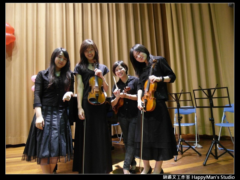 剛開始看到講台上的司儀,以為是外包廠商的專業級小姐,想著那似曾相識的身影突然驚覺,原來是演算法那個活潑的小懷,事後她說草稿完全沒用上……哈~畢竟系辦小姐臨機應變,將混亂的順序及時告知司儀,小懷會不會疑惑怎沒叫到我的名字呢:P?司儀的另一邊是演奏團,當然也不是外包廠商的專業樂團,是由我們系多才多藝的學妹們所組成,其中之一克里學妹還常來我研究室討論課業呢:D認真的她撥穗典禮結束,還來系館獨自唸書,她跟我說小時候學過小提琴,這次演奏團是臨時組成XD~她問學長我今年會畢業嗎?我當然回答(秘密),因為我想再看到認真的學妹呀>///<~