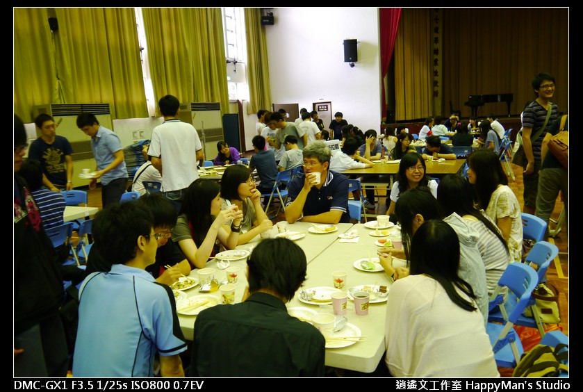 在同一學校系所待了整整六年,第一次有所謂的「期末導聚」!大概是為了慶祝下一任系主任的誕生,送舊和迎新統統一起來~看著系辦門外貼有歡迎參加期末導聚的海報,一直幻想著會有什麼樣的大餐,活動地點安排在「中正堂」,這場導聚感覺起來會相當盛大,開始有「吧啡吃到飽」的傳聞,既然有免費吃到飽的饗宴,能不去嗎:P更何況還可以跟同窗好友齊聚一堂,這才是我真正參與的目的:)