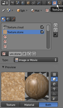接著到Textures新增一個新texture,Type為Image or Movie,然後載入stone的texture。
