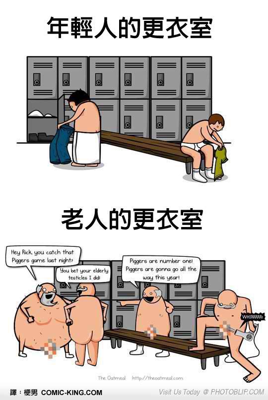 話說,更衣室時常出現奇景,我想說的話下面這張圖表達的淋漓盡致:D每次都會看見年長者全身赤裸,最近看到連小孩也光溜溜,一點也不在意他人眼光。看來會在意的人只有我><,不知道我哪時候會像他們那樣灑脫?:P
