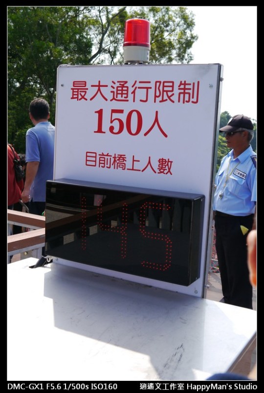 就如同指示牌所說最多只能同時150人過橋,但我覺得至少可以同時250人哩:P但那樣子的話就會人擠人,還是留點縫隙停留下來好拍照留念!