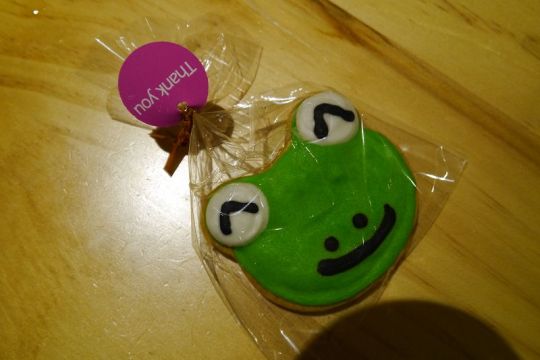 雖然生日已過,在PP99聚餐,雅靜送我可愛蛙臉餅乾。