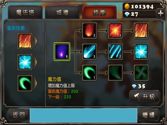 到Devils這地帶關卡無上限,這款遊戲看來怎麼打也打不完,雖然已經很熟悉遊戲模式,卻不會讓我感到乏味,原因是「累積機制」,關卡、錢幣、鑽石、任務、徽章都會隨著遊戲進度而累積,並且能夠使用錢幣和鑽石來提昇防塔和技能的等級,讓攻擊效果越來越強,就算妖怪越來越難纏,還是能夠繼續抵禦下去。