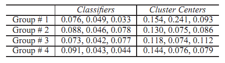 他的實驗所呈現的是,使用分類器去新來的特徵向量找出最佳子空間比只是簡單以歐式距離到叢集中心的架構還來的準確。